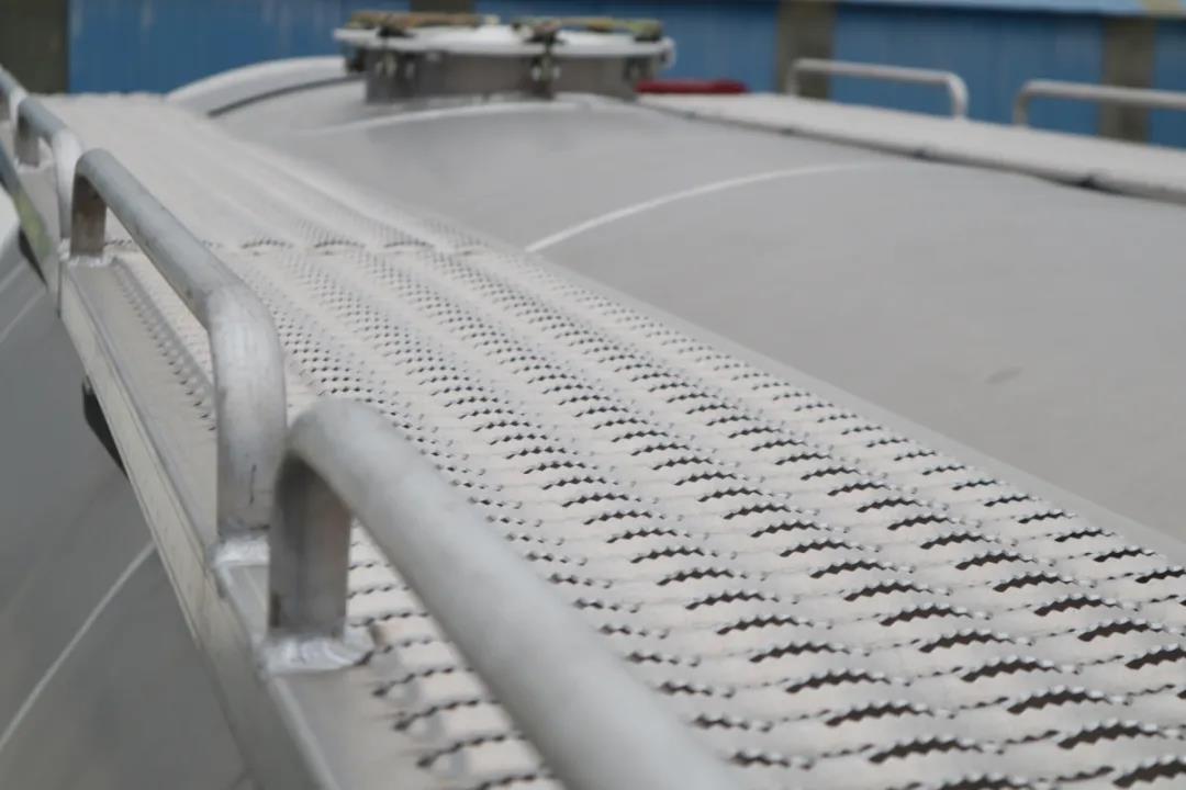 罐頂鋁合金防滑走臺(tái)帶防滑功能,既提高了車輛外觀效果,又保證罐頂作業(yè)的安全性;